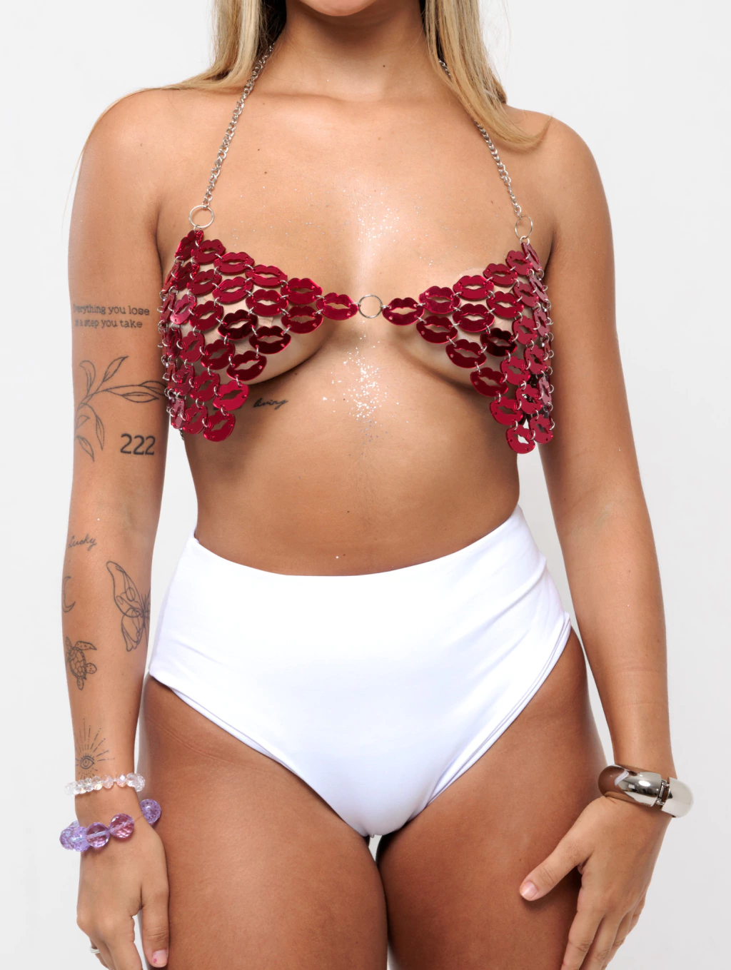 O Top Folia é um produto feito artesanalmente, com um trabalho de 4 horas para produção, feito todo em lantejoulas de acrílico, argolas de metais e correntes bem resistentes. Para melhorar o caimento e ajuste ao corpo, todas as peças possuem regulagem.